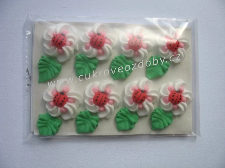 Velké květy s beruškou točené A bílé38 Kč/ ks
