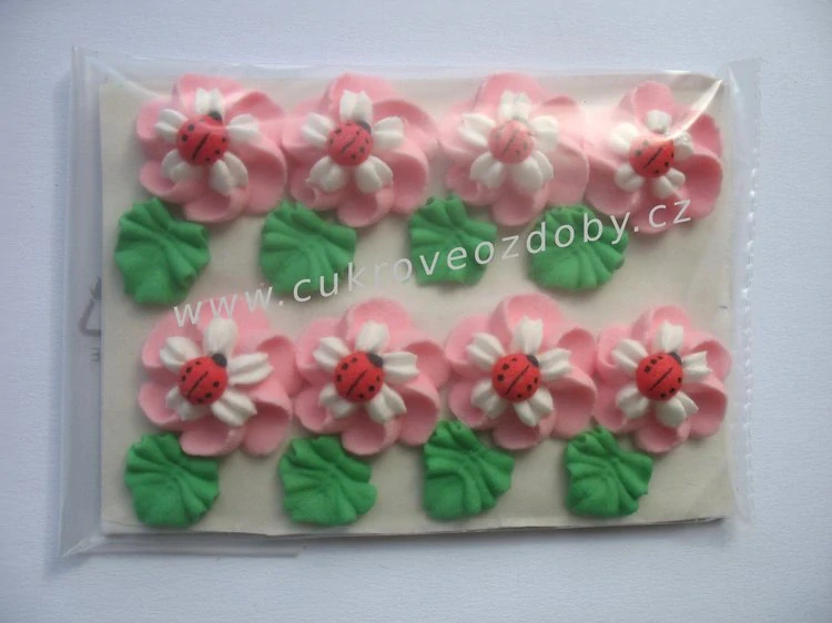 - Velké květy s beruškou točené A růžové