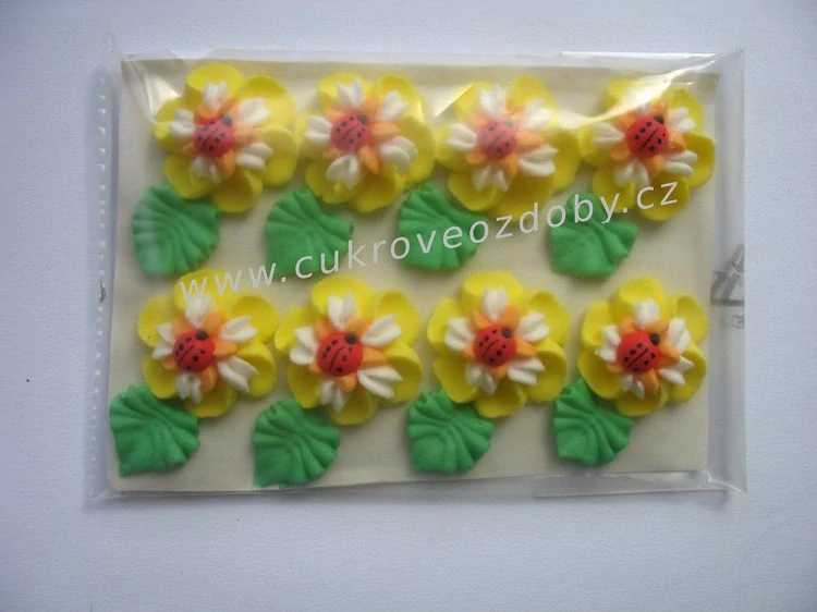 Velké květy s beruškou točené C žluté38 Kč/ ks